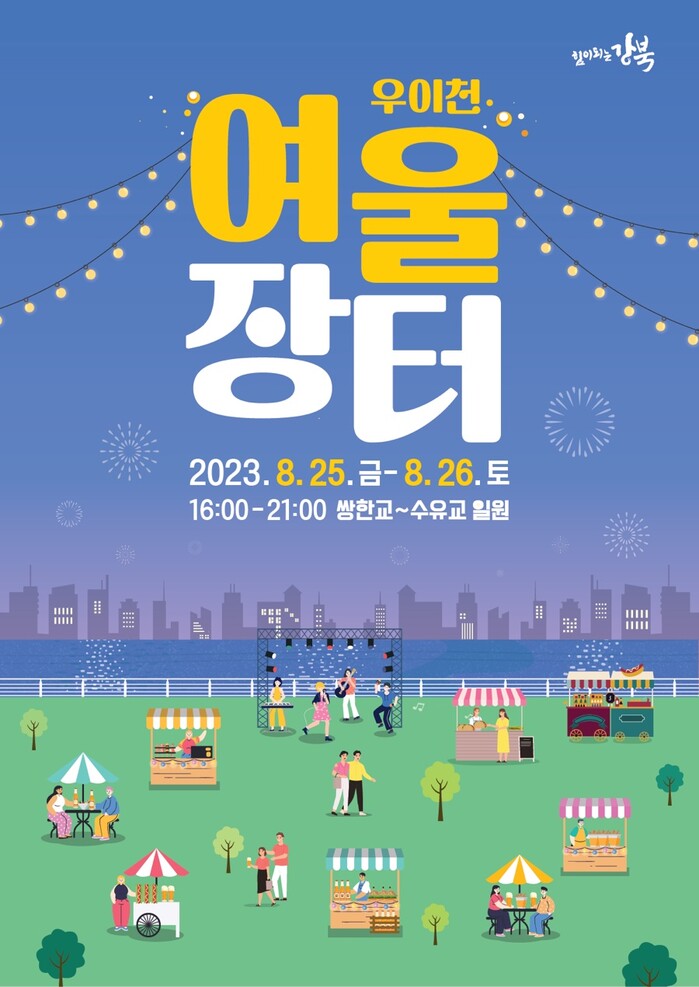 [시민일보 = 홍덕표 기자] 강북구(구청장 이순희)가 오는 25~26일 오후 4시부터 9시까지 우이천 쌍한교~수유교 일대에서 '제2회 우이천 여울장터'를 개최한다.