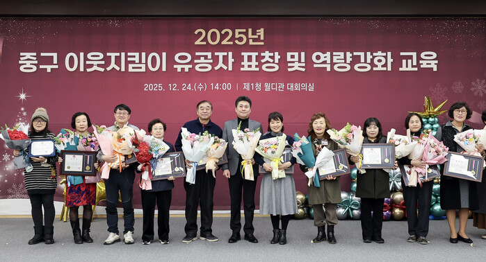 김정헌 구청장은 “현장 복지 최일선에서 누구보다 성실하게 활동하며 도움이 필요한 이웃을 먼저 살피고 중구 복지의 든든한 버팀목 역할을 한 ‘이웃지킴이’에 감사하다”라면서 “앞으로도 이웃지킴이가 보람과 자부심을 가지고 활동할 수 있도록 현장 중심의 지원·협력을 지속하겠다”라고 말했다.