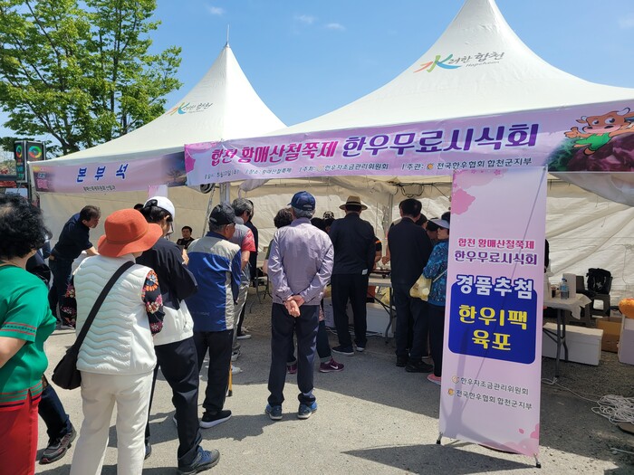 한우자조금관리위원회가 주최하고 전국한우협회 합천군지부가 주관하는 이날 행사는 황매산철쭉제에 방문하는 관광객에게 한우를 홍보하고자 마련됐다.