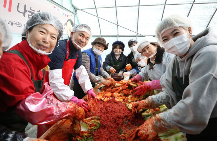 김장 행사에는 세곡동 바르게살기, 한국환경관리사총연합회, 부녀회 등 주민들이 나섰다. 이들은 4일에 걸쳐 배추를 손질하고, 절이고, 양념도 직접 준비하는 등 정성껏 만든 김장김치 450박스를 저소득 가구에 전달했다.