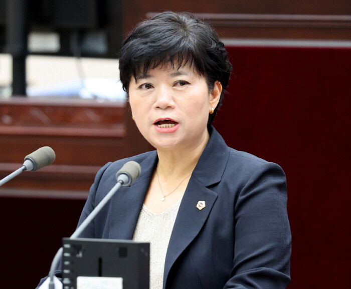 | 유승분 인천시의원이 독립적인 해양국 신설에 대해 설명을 하고 있다. |