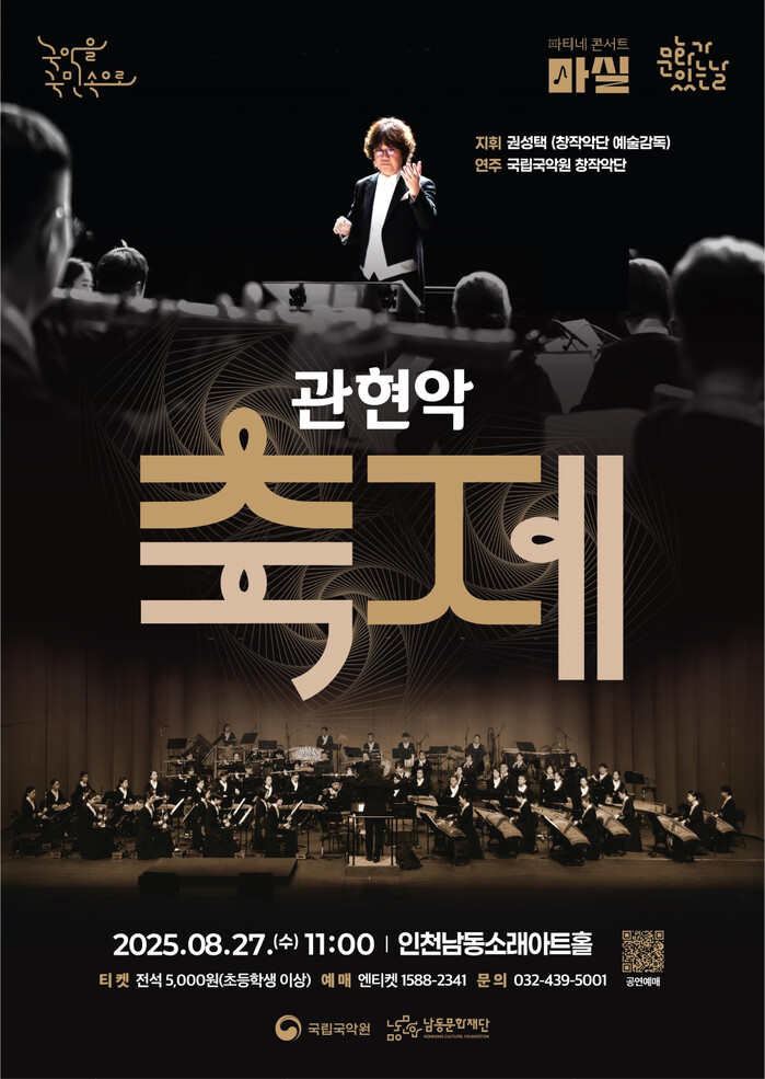 [인천=문찬식 기자] 인천 남동구 남동문화재단은 8월 마티네콘서트 마실로 국립국악원 창작악단의 ‘관현악 축제’를 남동소래아트홀에서 선보일 예정이라고 밝혔다.