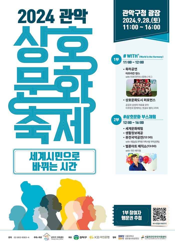 구민이라면 누구나 축제에 참여할 수 있으며, 관악구 공식블로그 또는 축제포스터의 QR코드를 통해 신청할 수 있다. 행사와 관련하여 더 자세한 내용은 센터 홈페이지에서 찾거나, 센터로 전화 문의하면 된다.