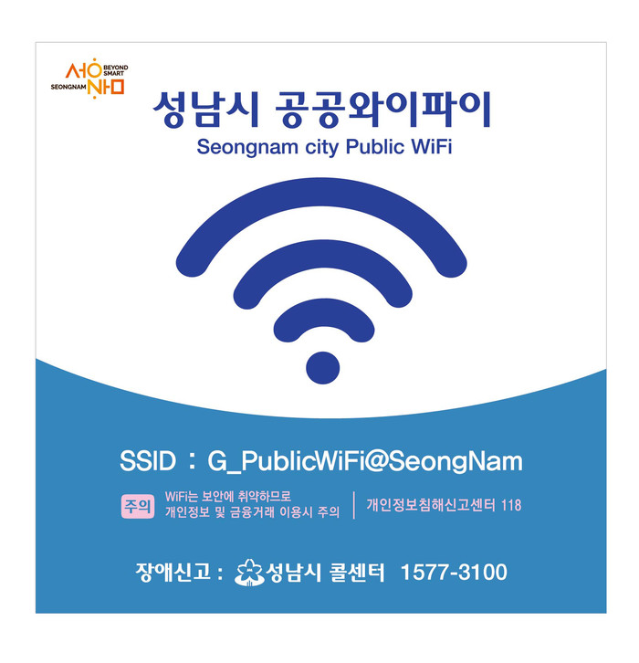 | ▲ 스마트도시과-무선인터넷을 사용할 수 있는 성남시 공공와이파이 홍보 이미지 |