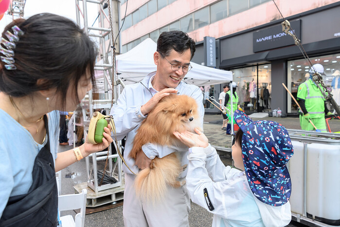 | ▲ 지난해 개최된 양천구 반려동물 문화축제에서 반려동물 가족과 이기재구청장. (사진=양천구청 제공) |