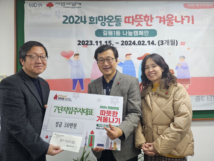 [시민일보 = 홍덕표 기자] 서울 성북구(구청장 이승로) 길음1동은 12개의 아파트 단지로 구성된 길음뉴타운으로 단지별 아파트 입주자 대표회의를 통해 기부 릴레이가 매해마다 이어지고 있다.