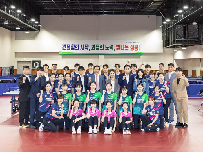 HU공사 한병홍 사장은 “화성특례시와 시의회의 든든한 지원 덕분에 선수들이 훈련에만 집중할 수 있는 최고의 환경을 만들 수 있었고, 그 성과가 이번 우승으로 이어졌다”며 “앞으로도 탁구단이 화성시민에게 사랑받는 명문 구단으로 자리매김하도록 적극 지원하겠다”고 강조했다.