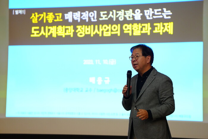 이날 배웅규 교수는 '도시경관과 도시계획, 정비계획의 상관성'을, 류용상 대표는 '신속통합기획, 모아주택·모아타운, 역세권 활성화사업 등 최근 주거지 정비방식과 여건변화에 따른 시사점' 등을 발표했다.