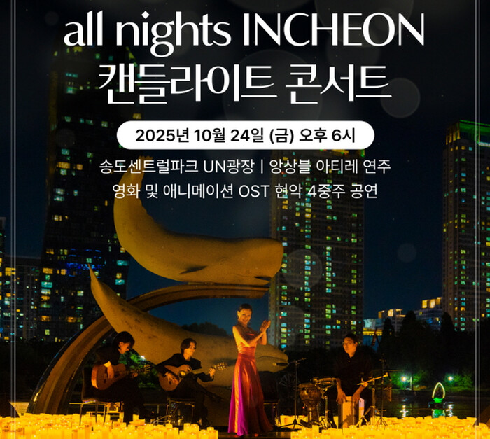 공연은 누구나 무료로 관람할 수 있으며 현장 프로모션을 통해 관람객에게 다양한 야간 굿즈도 증정할 예정이다. 한편 인천시와 인천관광공사는 17일부터 26일까지 송도 센트럴파크 일대에서‘2025 올 나이츠 송도 페스타’를 개최하고 있다.