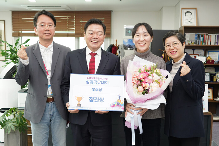 | ▲ 국민정책디자인 우수과제 행안부 장관상 수상 기념 사진. (사진=동대문구청 제공) |