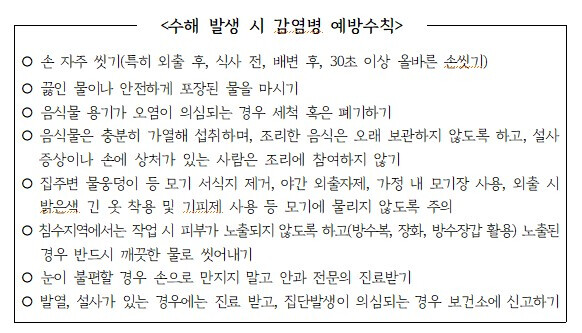 | ▲ 수해 발생 시 감염병 예방수칙 |