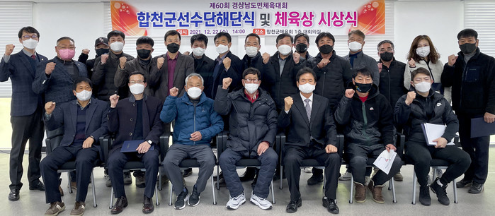합천군체육회(회장 김해은)는 12월 22일 체육회 1층 대회의실에서 제60회 경남도민체육대회 해단식을 가졌다. 합천군은 고등부 13개 종목, 어르신 4개 종목에 선수 165명 임원 116명 등 281명이 참가했다.
