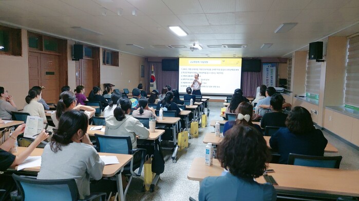 경상남도교육청 진로진학담당 장학관이자 대입정보센터장을 맡고 있는 김종승 장학관은 ‘내 자녀를 위한 맞춤형 진학정보’라는 주제로 대입제도의 변화와 그에 따른 자녀 교육 방향에 대해 강연하였다. 이어서 합천교육지원청 담당 장학사가 고교학점제의 특징 및 선택과목의 중요성과 경남참공동교육과정 등에 대해 설명했다.