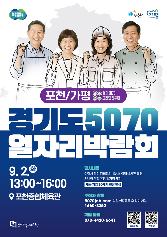 이번 행사는 ‘2025년 경기도 5070 일자리박람회(경기 5070 그레잇잡투어)’의 일환으로, 도내 중장년 구직자에게 맞춤형 채용 정보와 상담 기회를 제공하는 순회형 일자리 박람회다.