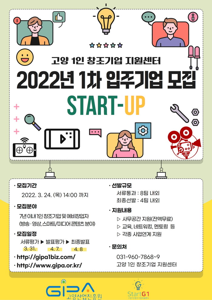 [고양=이기홍 기자] 고양산업진흥원(이하 진흥원)이 운영하는 고양 1인 창조기업 지원센터에서 2022년 1차 신규 입주기업을 모집한다.