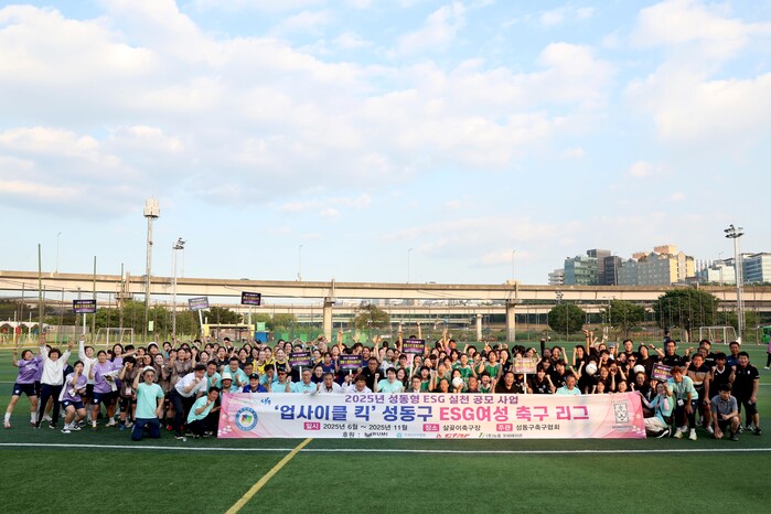 [시민일보 = 박소진 기자] 성동구(구청장 정원오)가 최근 ESG 실천 공모사업의 일환으로 서울시 자치구 최초로 여성 축구 동호인들을 위한 2025 업사이클킥, ESG 여성 축구 리그 개막식을 가졌다.