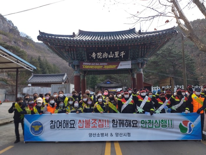 양산소방서(서장 박정미)는 겨울철을 맞이하여 등산객에 의한 각종 화재발생신속 대처를 위해 지난 18, 19일 양일간 하북면 통도사 및 내원사 일원에서 양산시 산림과와 합동 캠페인을 실시했다고 21일 밝혔다.