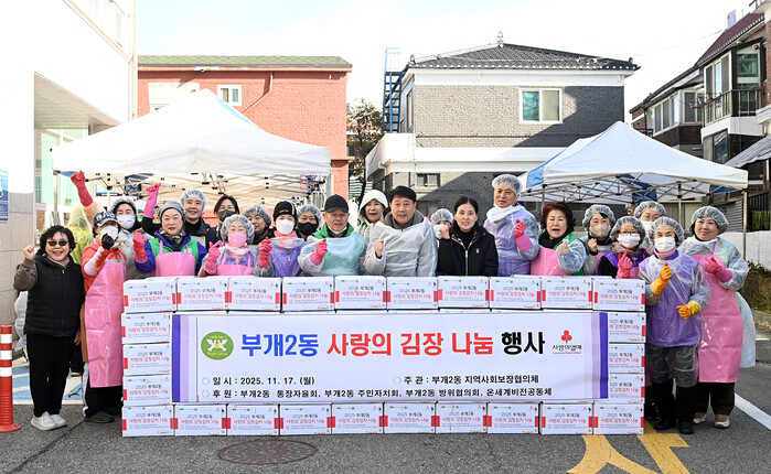 [인천=문찬식 기자] 인천 부평구(구청장 차준택) 부개2동 지역사회보장협의체는 지난 17일 지역 내 어려운 이웃의 따뜻한 겨울나기를 위한 ‘사랑의 김장김치 나눔’ 행사를 개최했다.