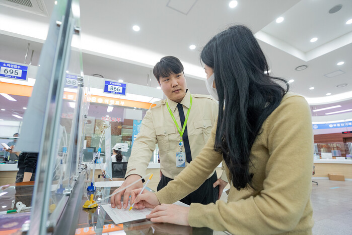| ▲ 민원인을 응대 중인 방호 전담 직원. (사진=양천구청 제공) |