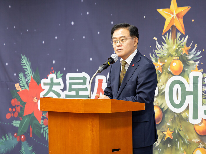 | ▲ 진교훈 서울 강서구청장이 화곡동 봉제산어르신복지센터에서 열린 어르신 축제에서 인사말을 하고 있다. (사진=강서구청 제공) |