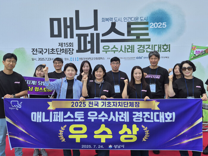[성남=오왕석 기자] 성남시(시장 신상진)는 전국 기초자치단체장 매니페스토 우수사례 경진대회에서 소상공인 이색점포 발굴 지원사업인 힙스토어 사례로 경제·지역산업 분야 ‘우수상’을 받았다고 25일 밝혔다.