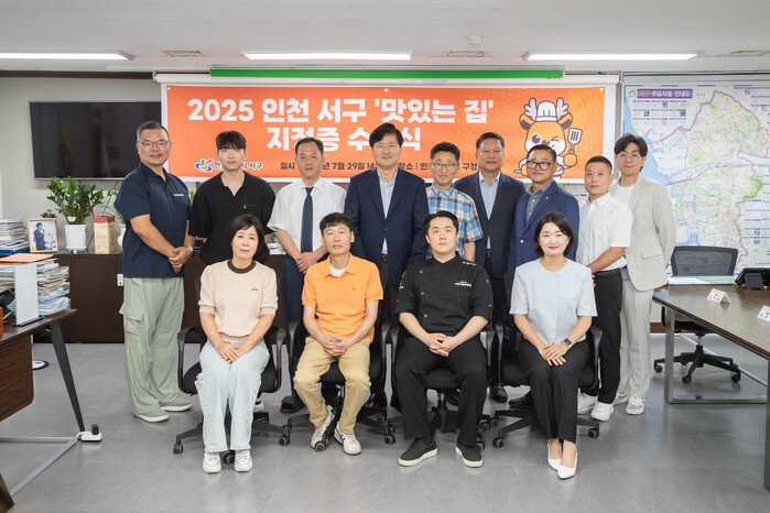 [인천=문찬식 기자]인천 서구(구청장 강범석)는 지난 29일 2025년 ‘서구 맛있는 집’으로 선정 된 외식 업소 9개소에 지정서 및 현판을 전달했다고 밝혔다.