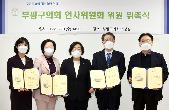 또한 이 날 위촉식 후, 첫 인사위원회를 열어 ▲2022년 부평구의회 인사운영 기본계획 ▲임기제 채용 계획 ▲소속 공무원 승진 등을 심의·의결해 인사권 독립의 의미 있는 첫걸음을 내딛었다.