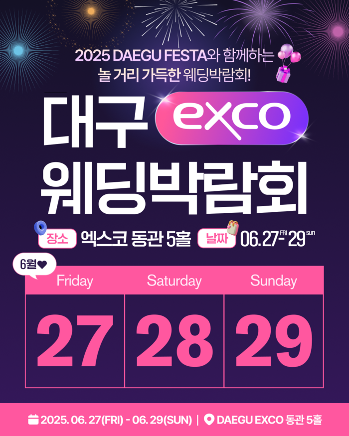 오는 6월 27일부터 29일까지 3일간, 대구 엑스코 동관 5홀에서 ‘2025 대구웨딩박람회 in EXCO’가 개최된다.