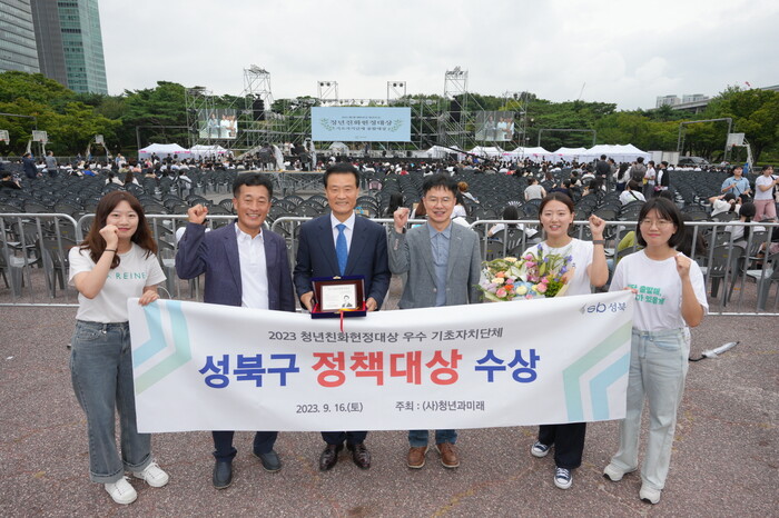 [시민일보 = 홍덕표 기자] 성북구(구청장 이승로)가 최근 사단법인 청년과미래(국회사무처 소속) 주관 '2023년 청년친화헌정대상'에서 우수 기초자치단체 정책대상을 수상했다.