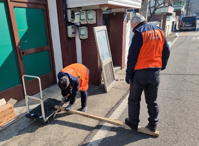 개항동행정복지센터의 요청에 따라 실시된 이번 활동은 실외(마당) 화장실 문이 떨어져 마음 편히 용변을 해결할 수 없는 세대에 떨어진 문을 수리해주는 활동으로 진행됐다.