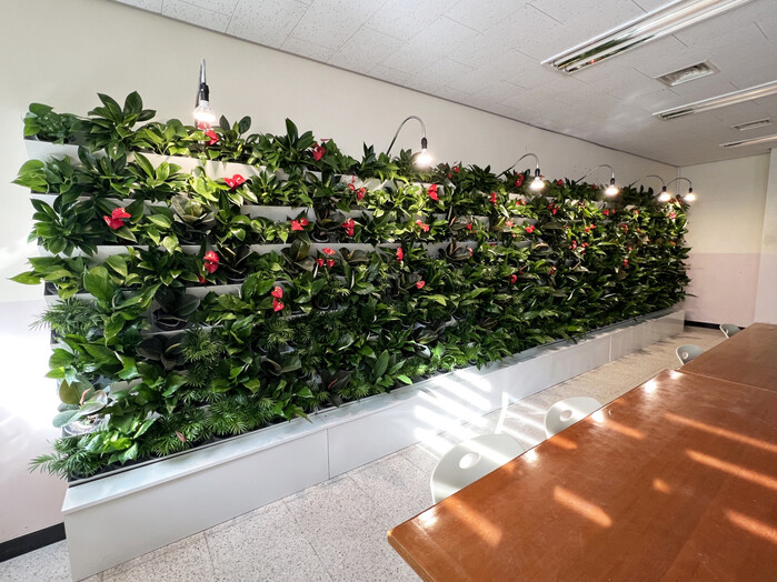 서울미래초등학교는 녹화면적 12㎡ 규모로 3곳에, 서울정진학교는 녹화면적 11㎡ 규모로 1곳에 조성됐다. 고무나무, 마리안느, 스킨답서스, 안스리움, 테이블야자 등 실내식물 11종을 심고 자동 관수 시스템을 설치했다.