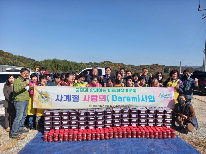 김재열 협의회장은 “바르게살기운동 합천군협의회에서 준비한 계절김치를 받으시는 우리들의 이웃분들이 회원들의 마음이 전해져 조금은 더 풍성한 가을을 보냈으면 한다”고 말했다.