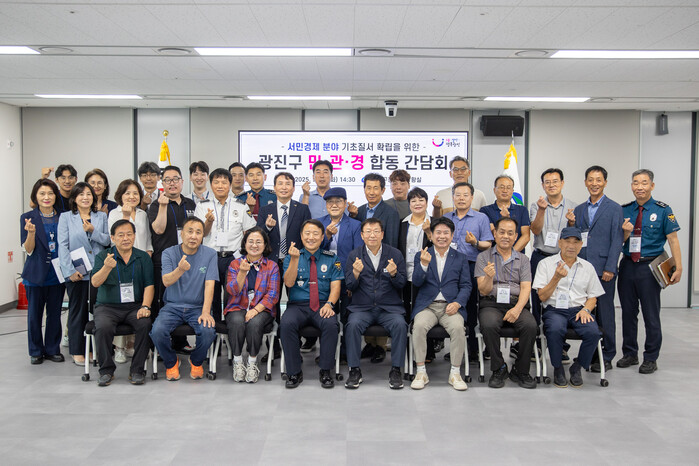 [시민일보 = 여영준 기자] 광진구(구청장 김경호)는 지난 16일 광진구청에서 서울광진경찰서(서장 박재영), 지역 상인단체 대표들과 함께 ‘민·관·경 합동 간담회’를 개최했다. 이번 간담회는 지역 소상공인과의 소통을 통해 서민경제 분야의 기초질서 확립을 목적으로 마련됐다.