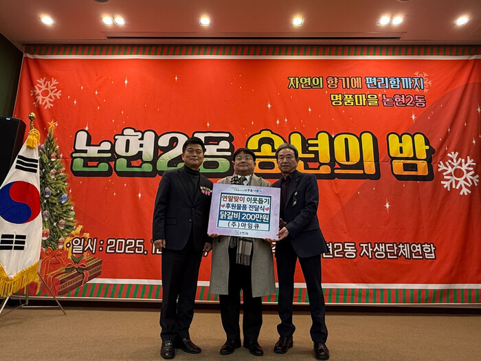 [인천=문찬식 기자] 인천 남동구 논현2동 행정복지센터는 ㈜아임큐(대표 임승천)로부터 지역사회 나눔 활동의 하나로 200만 원 상당의 닭갈비를 전달받았다고 밝혔다.