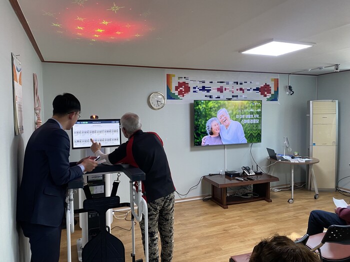 헬스케어시스템은 노인들이 간단한 실내 운동을 즐기며 혈압, 체성분 등 자신의 건강 상태를 데이터로 관리할 수 있도록 지원한다.