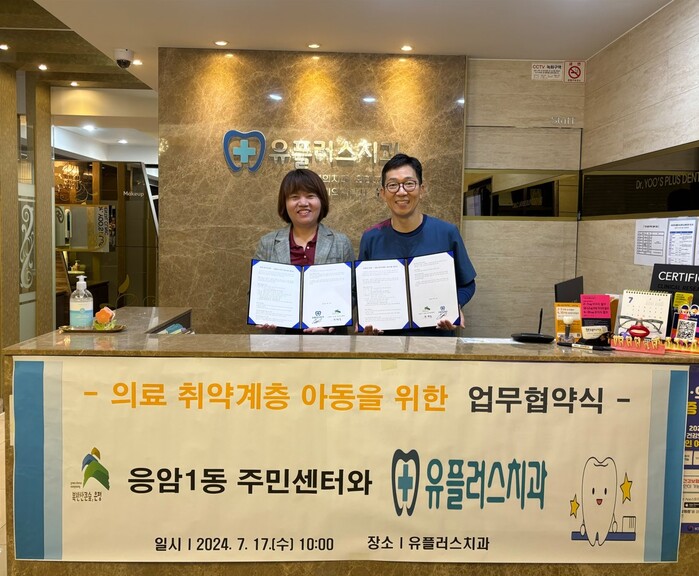 [시민일보 = 이대우 기자] 서울 은평구(구청장 김미경) 응암1동은 최근 유플러스치과와 의료 취약계층 아동 치아 건강을 위한 업무협약을 체결했다고 밝혔다.