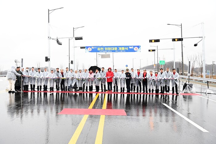 [김천=박병상 기자] 경북 김천시는 지난 5일 “시청~유한킴벌리~혁신도시를 연결하는 마지막 구간인 김천 희망대로 개설 공사 개통을 기념하는 테이프 컷팅식을 가졌으며, 잔여 공정(부체도로 등)은 상반기에 마무리할 계획이다.”라고 밝혔다.