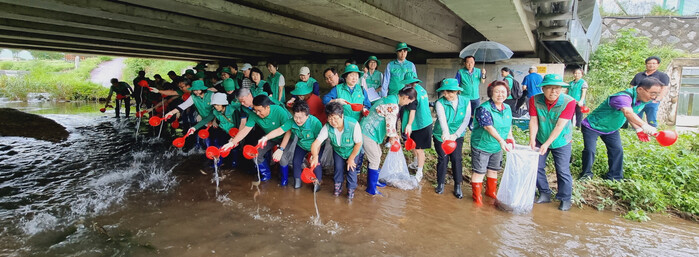 참가자들은 미꾸라지 200kg을 하천에 방류하며 수생태계의 회복을 도왔고, 이어 공촌천 산책로 주변 환경정화 활동을 통해 깨끗하고 쾌적한 하천 환경 조성에 힘을 보탰다.
