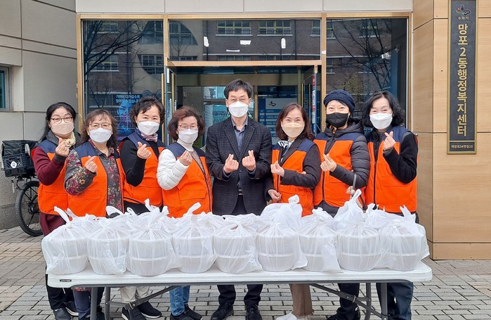 경기 수원시 영통구 망포2동 지역사회보장협의체가 28일 지역내 거주하는 취약계층 20가구를 대상으로 밑반찬을 지원하는 ‘사랑나눔 반찬나눔’ 봉사를 했다. 이날 위원들은 직접 재료를 구입하고 소불고기, 배추겉절이 등 반찬을 만들어 저소득 노인 및 장애인 가정에 전달했다. 사진은 이날 봉사활동에 참여한 위원들이 기념촬영을 하는 모습. (사진제공=수원 영통구청)