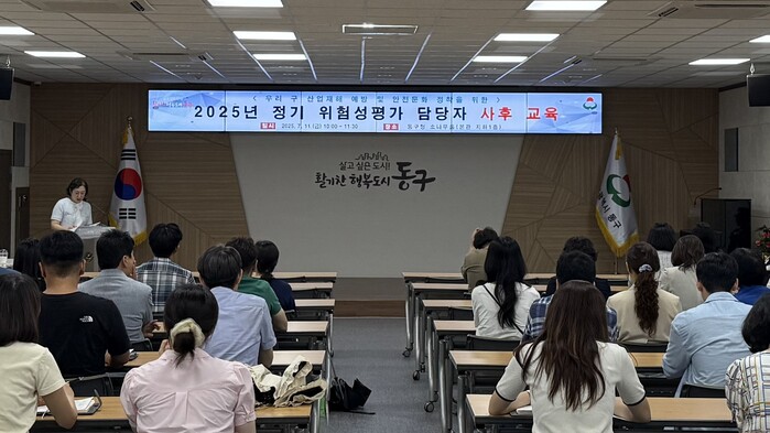 [인천=문찬식 기자] 인천 동구(구청장 김찬진)는 지난 11일 동구청 소나무홀에서 ‘2025년 정기 위험성평가 담당자 사후교육’을 실시했다고 밝혔다.