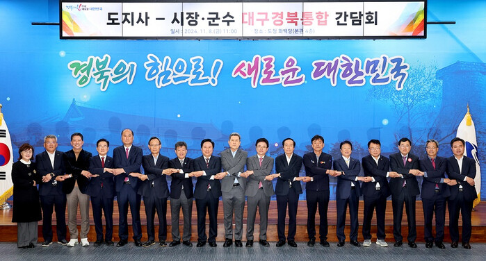 [안동=박병상 기자] 경상북도는 지난 8일 도청 화백당에서 이철우 도지사와 시장, 군수를 포함한 주요 관계자들이 참석한 가운데 『도지사-시장군수 대구경북통합 간담회』를 개최했다.