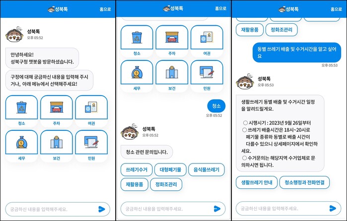 이승로 구청장은 “최신의 정보통신 기술을 활용해 구민의 행정정보 궁금증을 해결하고 민원 응대 서비스의 효율성을 높이기 위해 이번 서비스를 시작하게 됐으며, 성북구민이 함께 만드는 진화형 서비스인 만큼 많은 관심과 이용을 바란다”고 말했다.