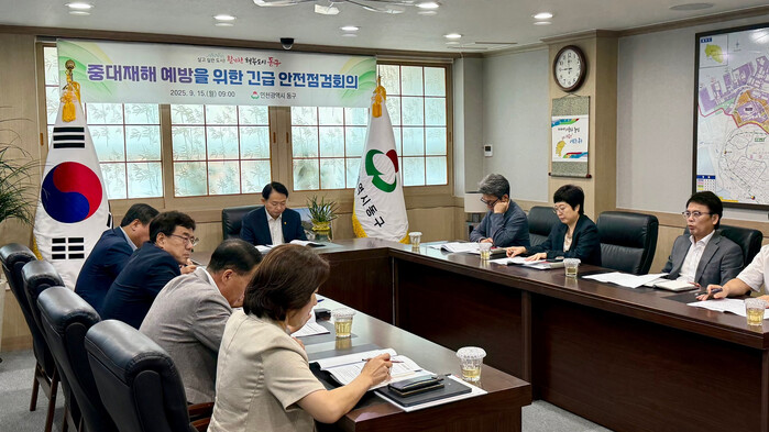 [인천=문찬식 기자] 인천 동구(구청장 김찬진)는 지난 15일 구청 접견실에서 ‘중대재해 예방을 위한 긴급 안전점검 회의’를 개최하고, 관내 주요 사업을 수행하는 부서를 중심으로 안전 강화 대책을 논의했다고 밝혔다.