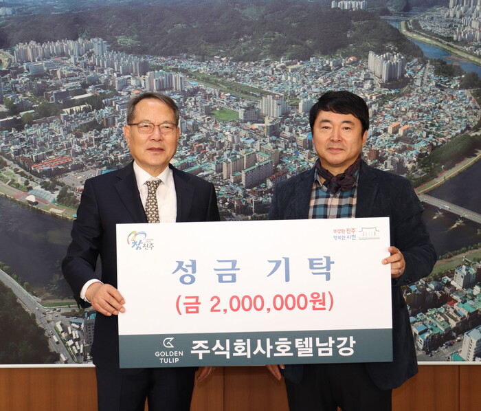 한편, 중앙동에 위치한 ㈜호텔남강은 ‘야간특화 안심숙소’에 선정됐다. 야간관광 특화도시 사업의 일환인‘야간특화 안심숙소’는 야간에도 편안한 여행을 즐길 수 있는 안전한 시설과 편의 제공을 위한 숙박시설로 진주시가 지정한 안심숙소이다. ㈜호텔남강은 이번 기부활동을 시작으로 운영 수익의 일부를 사회에 환원하고 꾸준히 기부할 것이라고 밝힌 바 있다.
