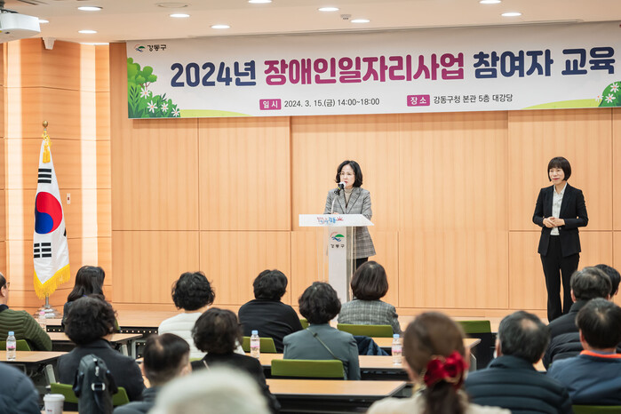 [시민일보 = 이대우 기자] 서울 강동구(이수희 구청장)는 최근 강동구청 대강당에서 장애인 일자리사업 참여자를 대상으로 업무 관련 필수 교육을 진행했다.