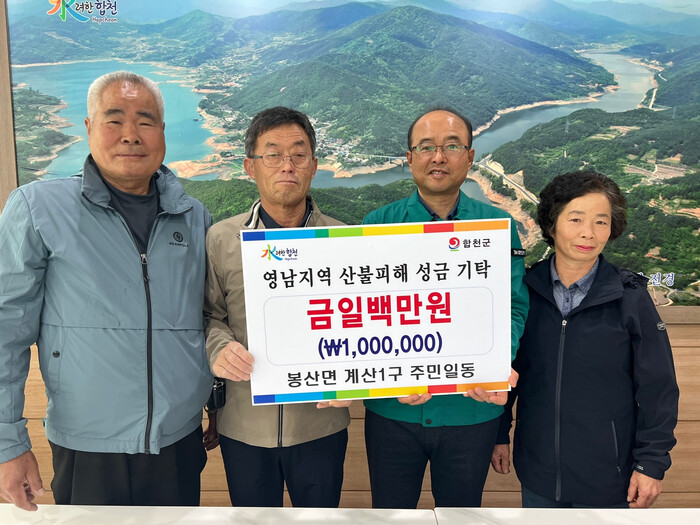 박재홍 봉산면장은 "이웃의 어려움에 솔선수범하여 나눔을 실천한 계산1구 주민들께 깊이 감사드린다"며 "성금이 필요한 곳에 뜻깊게 쓰이도록 잘 전달하겠다"고 말했다.