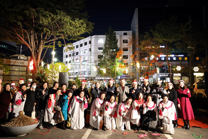 매력정원 일대는 설치된 크리스마스 장식과 빛 조형물로 가득 채워졌으며, 엄 구청장 권한대행의 인사말을 통해 연말연시 희망과 사랑의 메시지를 전했다.