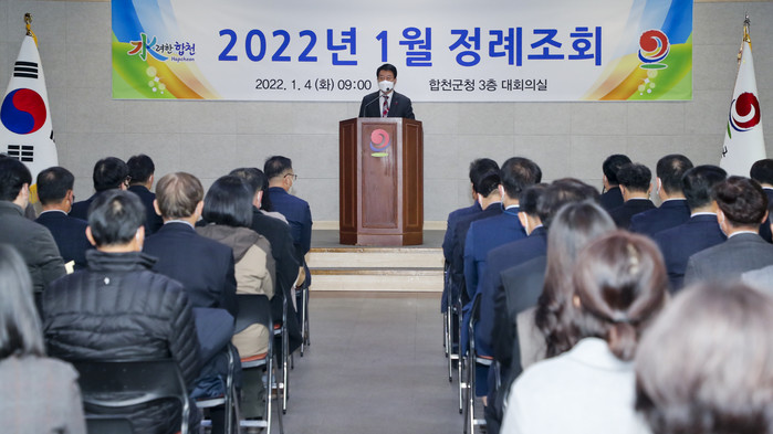 합천군(군수 문준희)은 4일 오전 9시 군청 대회의실에서 정례조회로 임인년 새해를 시작했다. 이번 정례조회는 방역패스를 도입해 코로나19 백신 접종을 완료한 공직자 및 일반인이 참석한 가운데 진행됐다.