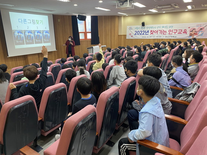 시는 올 한 해 동안 9개교 700여 명의 초중고 학생을 대상으로 총14회 ‘찾아 가는 인구 교육’을 진행하기로 하고, 첫 회로 4월 29일 문산 초등학교에서 교육을 진행했다.