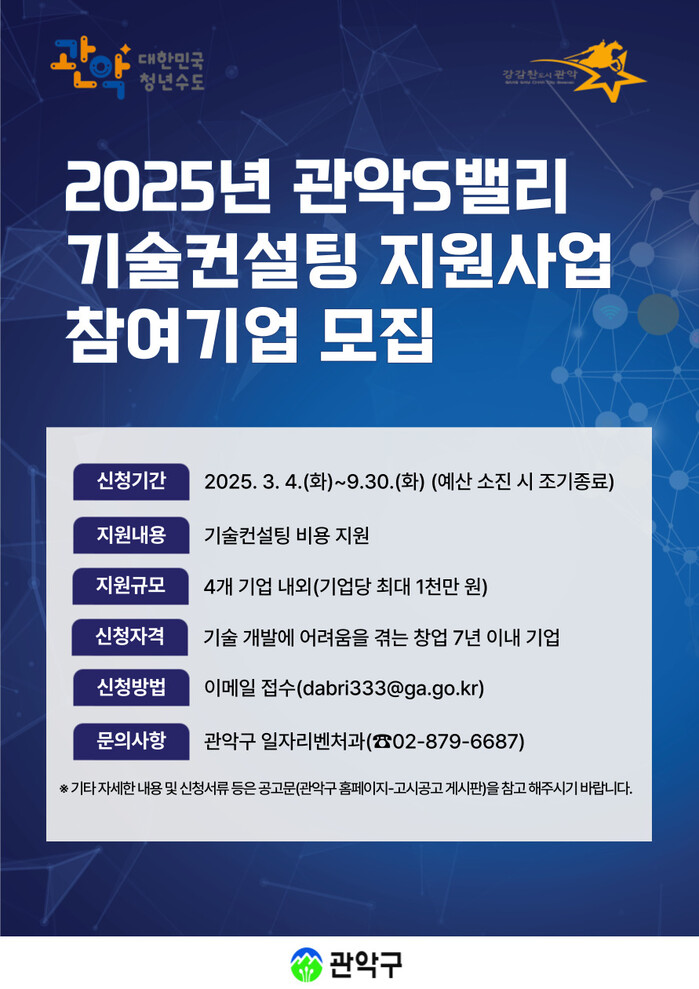기술 컨설팅 지원에 대한 자세한 사항은 관악구청 홈페이지에서 확인하면 된다.